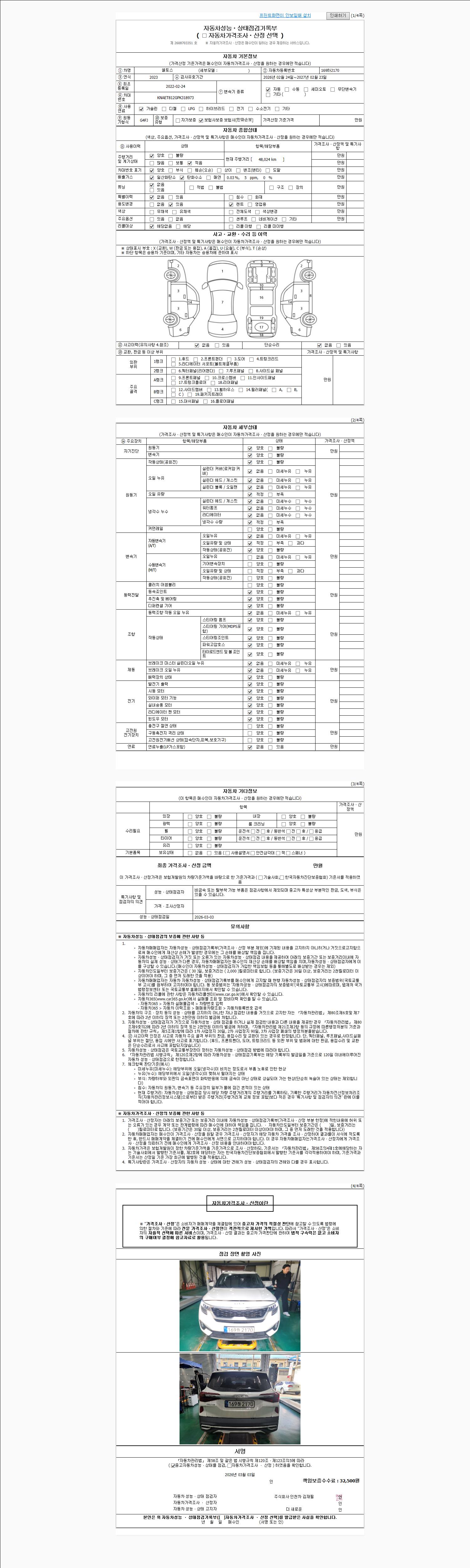 - 2. 차량 등록증이나 성능점검지 등을 상담자에게 요청및 확인하시고 사전에 미리 점검 하시기를 권유드립니다.